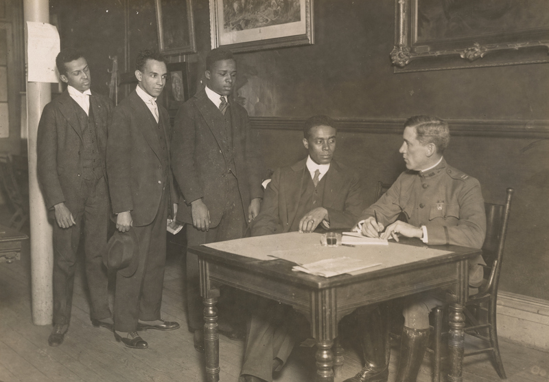 Browse Items (37 total) Browse All Browse by Tag Search Items Sort by: Title Creator Date Added / 4 pages Colored Stevedores Unloading Piles From a Ship at Brest. No Stevedore Regiment in France Excel in Workmanship These Stalwart Men of the Race. American Stevedore Regiment. "The Advance Guards of Democracy" Lined Up For Mess "Somewhere in France." United States Provisional Training Company No. 5 of the Colored Officers Training Camp at Fort Des Moines, Iowa Negroes Enlist for Officers’ Training Camp How They Did it Over There. Colored troops of the 505th Engineers that returned on S.S. Roma showing how they used the cold steel on the Huns Recruits receiving instruction. Camp Gordon, Georgia Ike Sims of Atlanta, Georgia, 87 years old, has eleven sons in the service Atlanta University Oakland View Michael Page Parade of African American Regimental Band in France, c. 1917-1919 Sort by: Title Creator Date Added / 4 pages Output Formats atom, dcmes-xml, json, omeka-xml, rss2